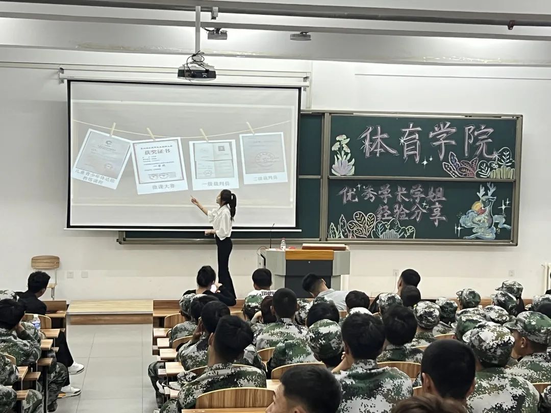 为帮助新生更好地适应大学生活,树立新目标、养成好习惯,促进新老生沟通交流,2023年9月14日吉林师范大学博达学院体育学院在综合楼开展“优秀学长学姐经验分享”,出席本次会议的有:王乐学姐、毛伟明学长、王庆馨学姐以及23级全体大一新生。