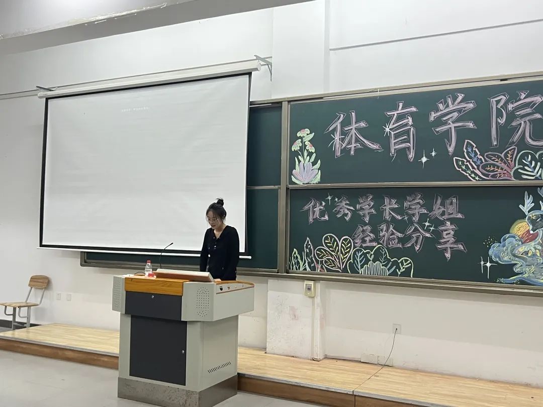 最后给大家分享经验的是体育学院行政助理王乐学姐,她为大家讲述自己过去三年的故事,她刚来大学时和现在所有大一新生一样对前途迷茫、没有目标的大一生活,但是明确了自己的目标之后,对所有的事情有了重新的规划,积极参加学校组织的活动,从各种工作各种事情方面让自己学习了成长了,一步一步的向上走才成就了今天的自己,最后学姐送给大家一句话:“付出终有回报,机会都是留给有准备的人的。”