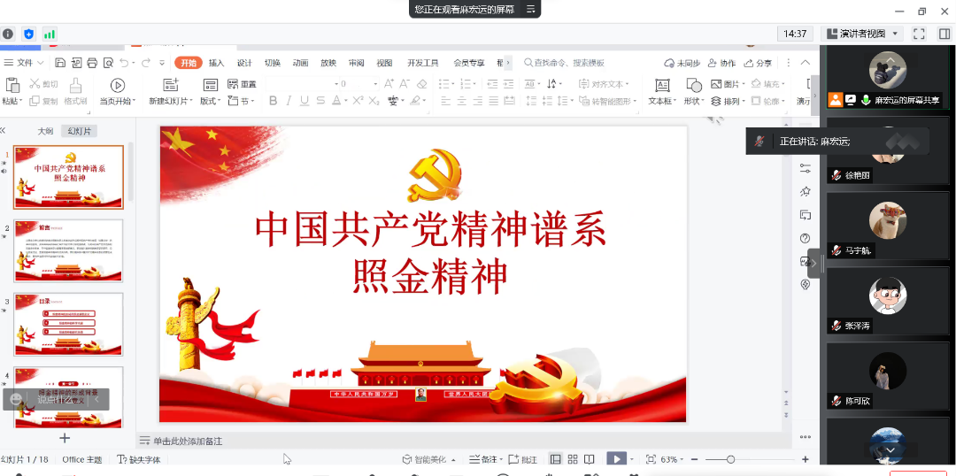 本期党课主题为—照金精神,由麻宏运同志为全体党员和积极分子解读照金精神内涵。