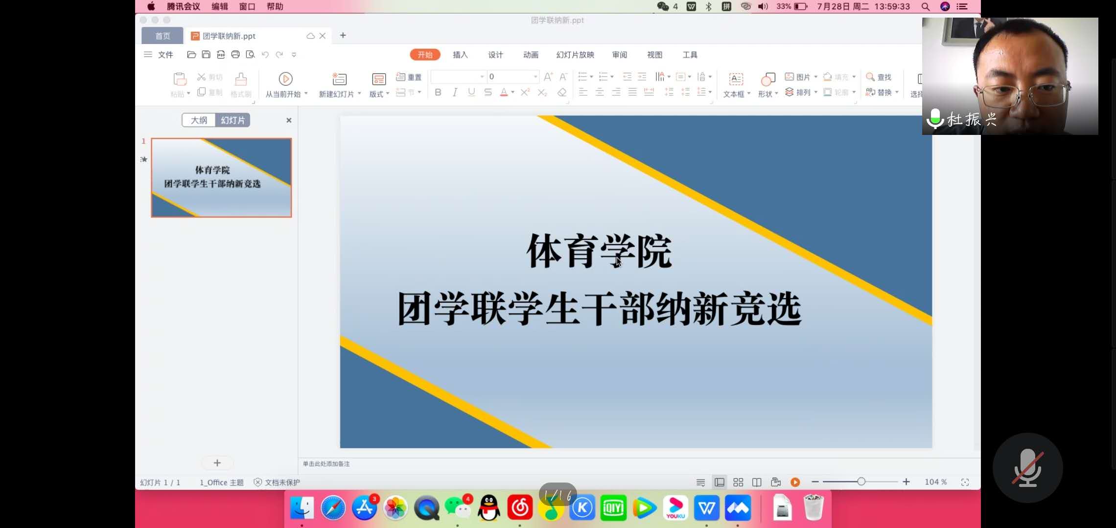 下午两点,竞选正式开始。35位候选人逐一进入腾讯会议进行3分钟的演讲,每位候选人都充分表达了自己对于学生会的认识以及如果竞选成功如何积极有效地开展工作。老师和主席团的学长学姐们也尽心尽责,根据每位候选人竞选的职位不同,以及自身部门的需要,对每位候选人提出相应的问题,希望学生会可以吸纳一些有准备有恒心的同学可以为学生会的发展做出一份贡献。