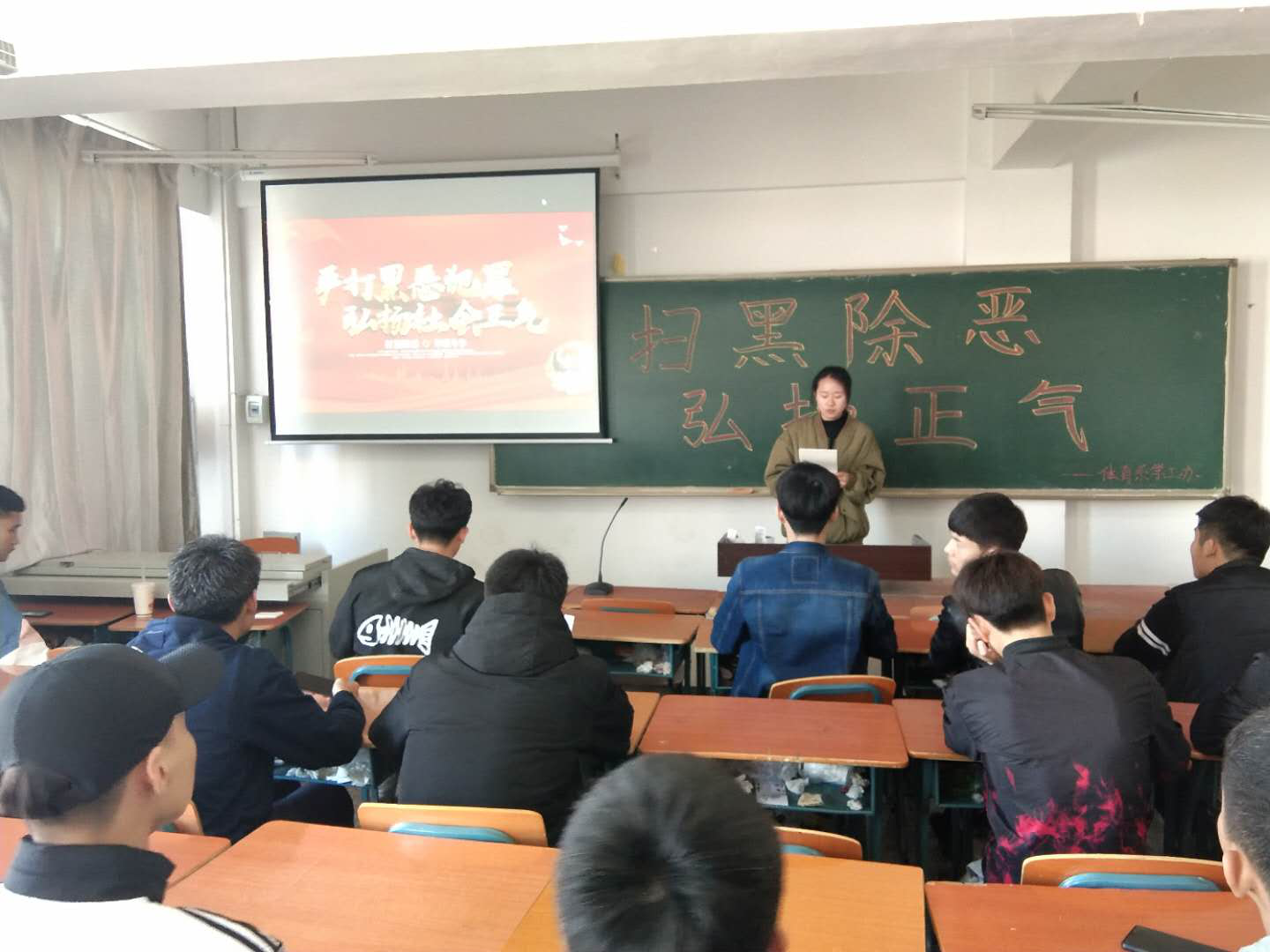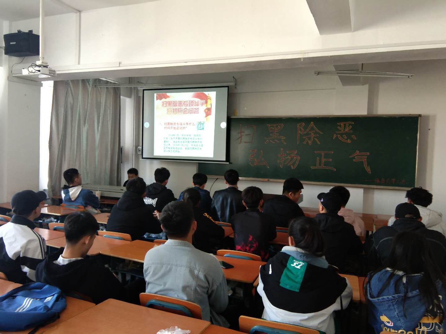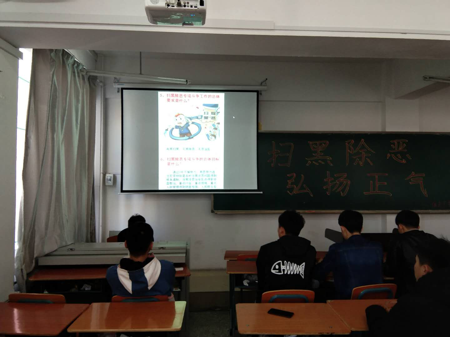 又以重点打击八种黑恶势力为主要内容,通过观看“扫黑除恶”有关视频,向同学们积极宣传打击黑恶势力和违法犯罪的重要性。接着,同学们围绕应该如何做遵纪守法、如何利用法律保护自己等内容积极展开了讨论。