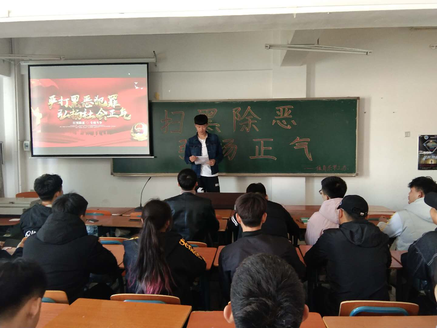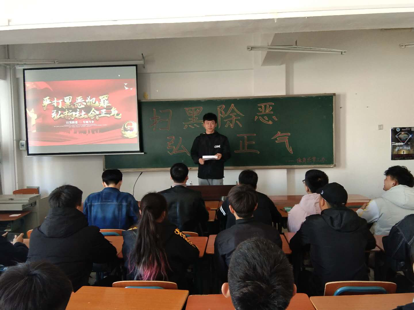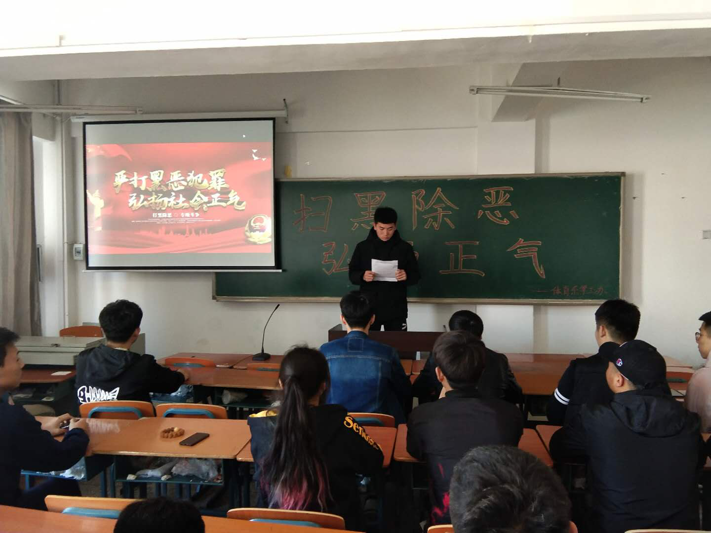 会议开始后每班班长首先针对“扫黑除恶”的意义及重要性进行了演讲。