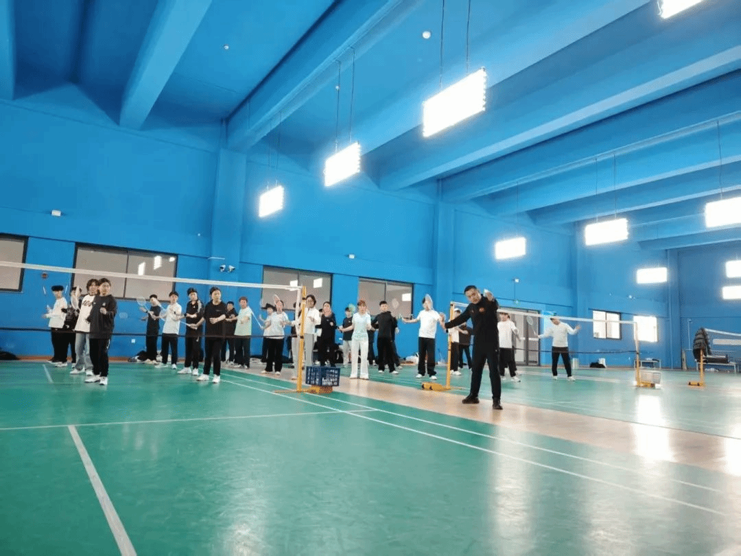 温振迪老师在教授学生时,从细微羽毛球动作细节出发,由点及面的进行亲自指导。