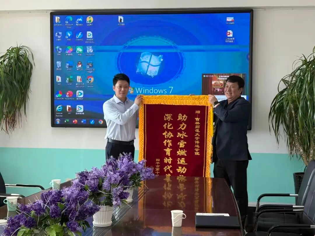 四平市第十二中学校长葛占军代表学校向我校赠送锦旗,对我校特色体育项目建设成果表示高度认可。双方就校际合作、校园体育发展等议题深入交流,为后续协同育人、共促发展奠定坚实基础。同时,就乡村中学在健康校园建设中面临的实际困难进行了深入阐述。