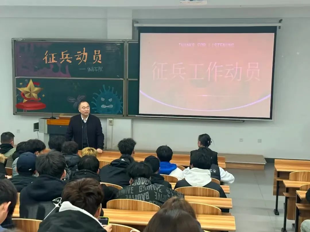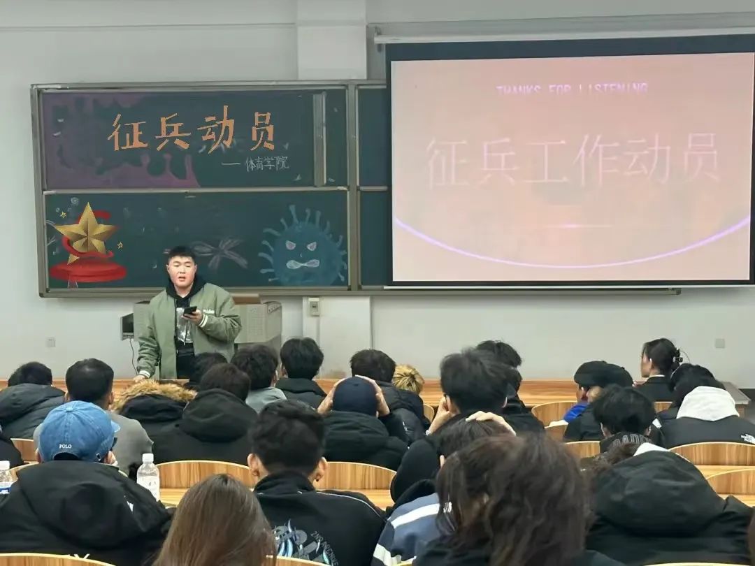 2024年11月20日,吉林师范大学博达学院体育学院征兵工作动员大会在综合楼1118召开,会议由柳杨老师主持,旨在鼓励学生积极参与征兵,为国家的安全和发展贡献力量。24级全体同学参会。
