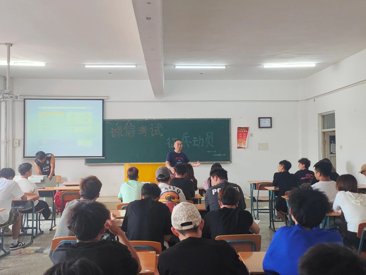 随着下半年邻近,柳杨老师还进行了征兵工作动员宣讲。国无防不立,民无兵不安。大学征兵工作是治国安邦的大事,也是加强国防和军队建设的迫切需要。作为当代大学生,我们应该主动承担起这份重任,为建设一支“听党指挥、能打胜仗、作风优良”,“召之即来、来之能战、战之必胜”的现代化人民军队积极贡献自己的力量。