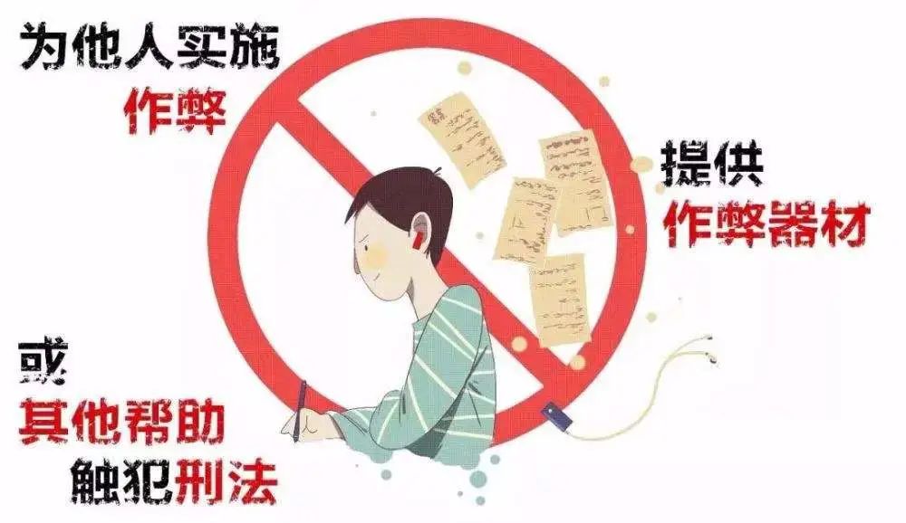 我国刑法明确规定,在法律规定的国家考试中,“组织作弊的”“出售、使用无线作弊器材的”“向考生提供试题、答案的”均属于违法行为。《最高人民法院、最高人民检察院关于办理组织考试作弊等刑事案件适用法律若干问题解释》中也规定,对在高考、研考等国家教育考试中组织作弊的,将直接认定为“情节严重”行为,处3年以上7年以下有期徒刑并处罚金。