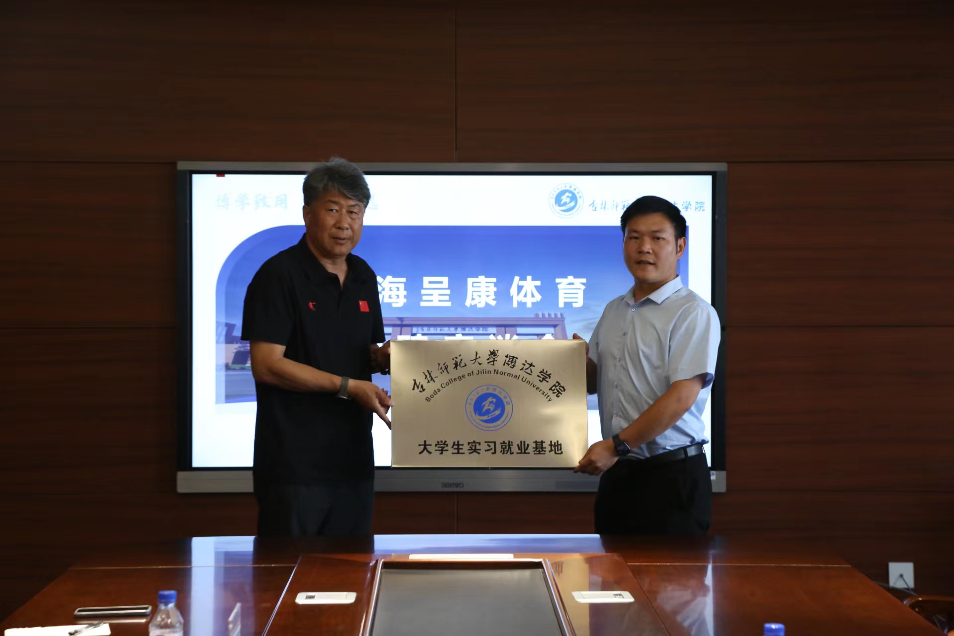 吉林师范大学博达学院体育学院副院长袁吉为上海呈康体育发展有限公司授牌。