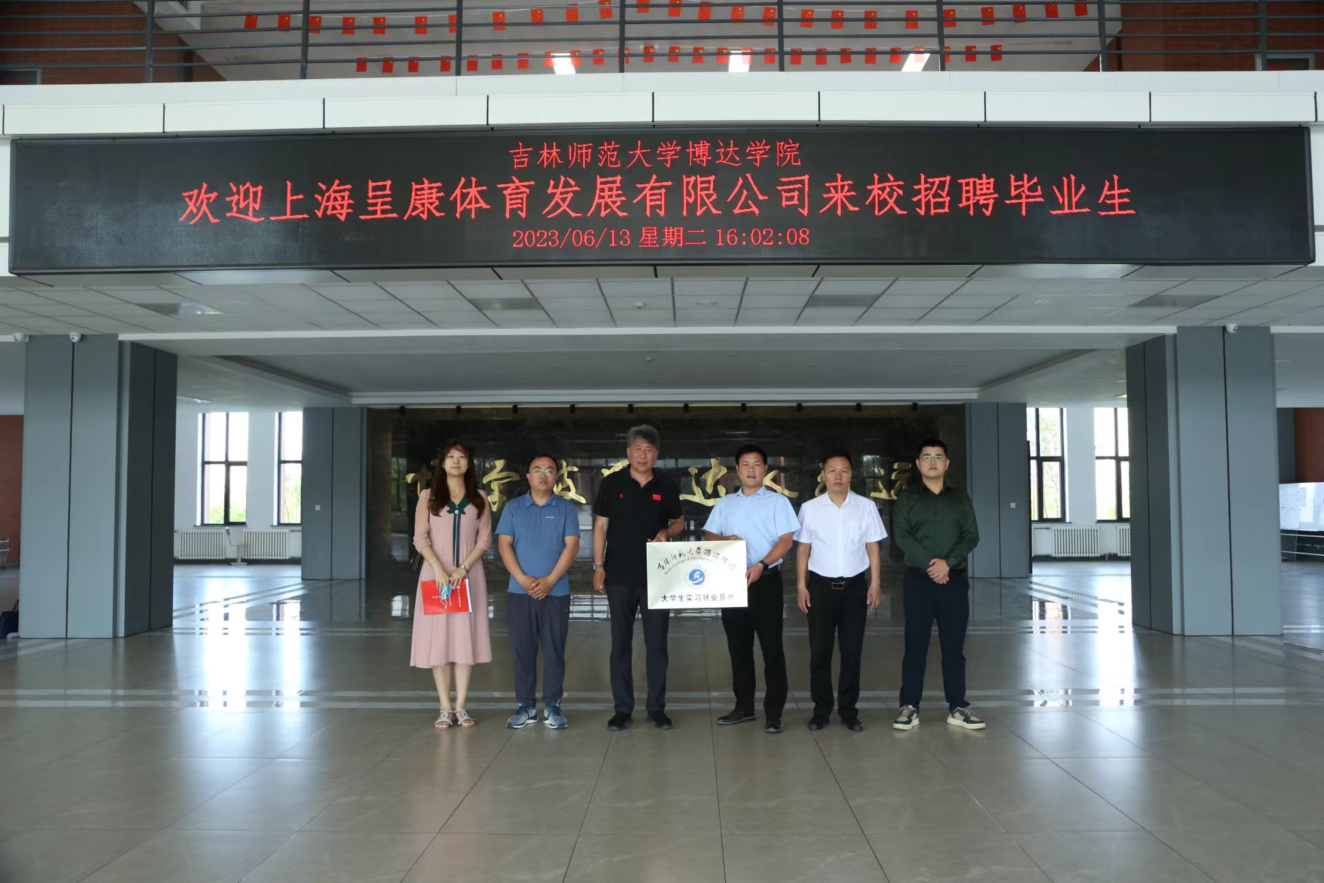 出席本次会议的领导有:上海呈康体育发展有限公司校企部总监钟邵彬、校企部经理韩泽;吉林师范大学博达学院就业创业工作处处长刘庆斌、体育学院副院长袁吉、学工办主任杜振兴、辅导员王婧。
