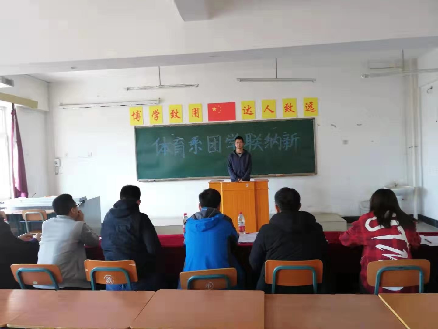 吉林师范大学博达学院体育系于2019年3月18日下午3点30分在1328教室举行团学联纳新活动。出席本次纳新活动的有体育系主任邵连成老师,体育系学工办负责人杜振兴老师,体育系学生会主席团及各部门部长。
