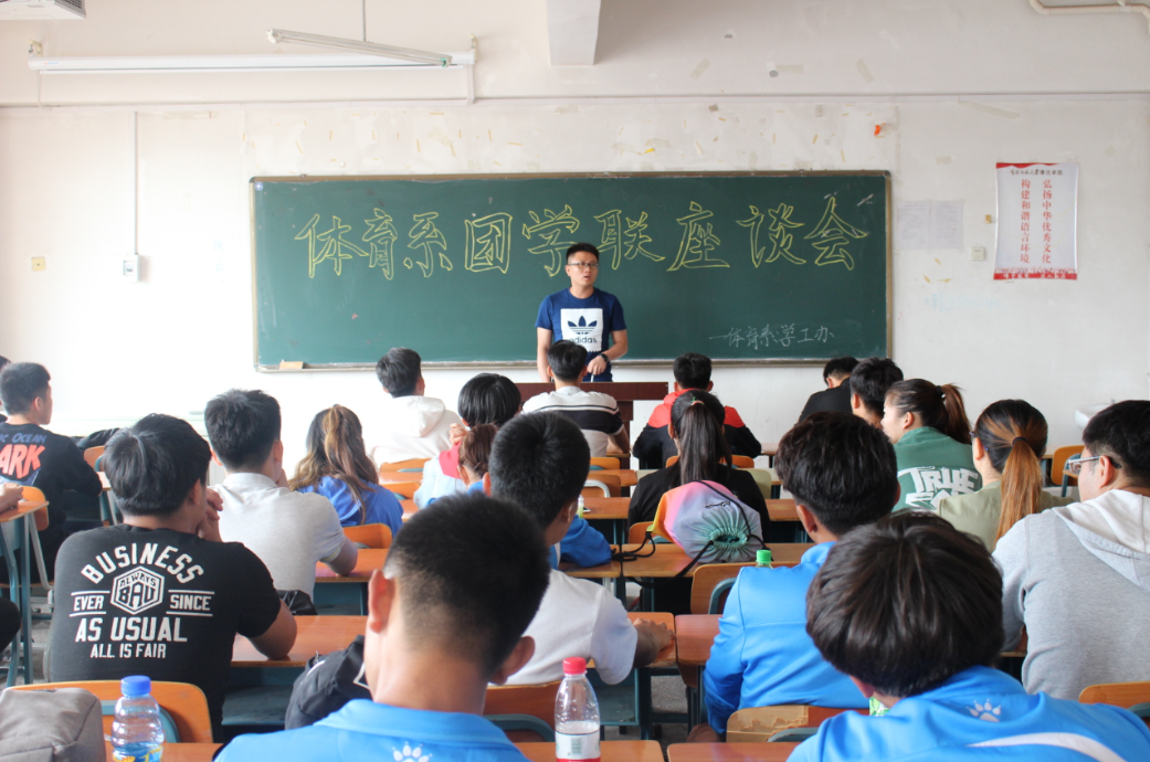 为了加强体育系学生间的凝聚力,培养学生们的进取精神和责任感。吉林师范大学博达学院体育系于2017年9月15日中午12时30分在一教1417教室召开了体育系团学联座谈会,团学联大家庭欢乐祥和,学生干部齐聚一堂。 本次座谈会以各抒己见的方式展开,体育系辅导员王博老师主持会议并发表了重要讲话。首先团学联主席团及其他学生干部依次介绍自己并介绍各自部门的职能,使得每位学生干部再次澄清自己的分内之事,及部门之间的协调配合方式。各部门作简单的报告之后,辅导员王博老师作了总结:强调体育系是一个大家庭,我们要拧成一股绳好好拼搏,团学联每位学生干部要以身作则,为体育系的发展奉献出坚实的力量。
