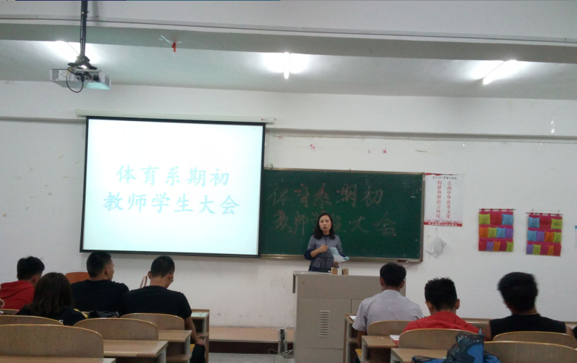 为了让学生调整状态,尽快适应新学期的学习和训练节奏,确保校园的安全稳定,体育系于2017年8月27日在三教3322教师召开了“2017-2018学年第一学期期初教师学生大会”。体育系卢秉旭主任、辅导员尹茹以及2015级、2016级全体同学参加了本次会议,会议由体育系主任卢秉旭主持。