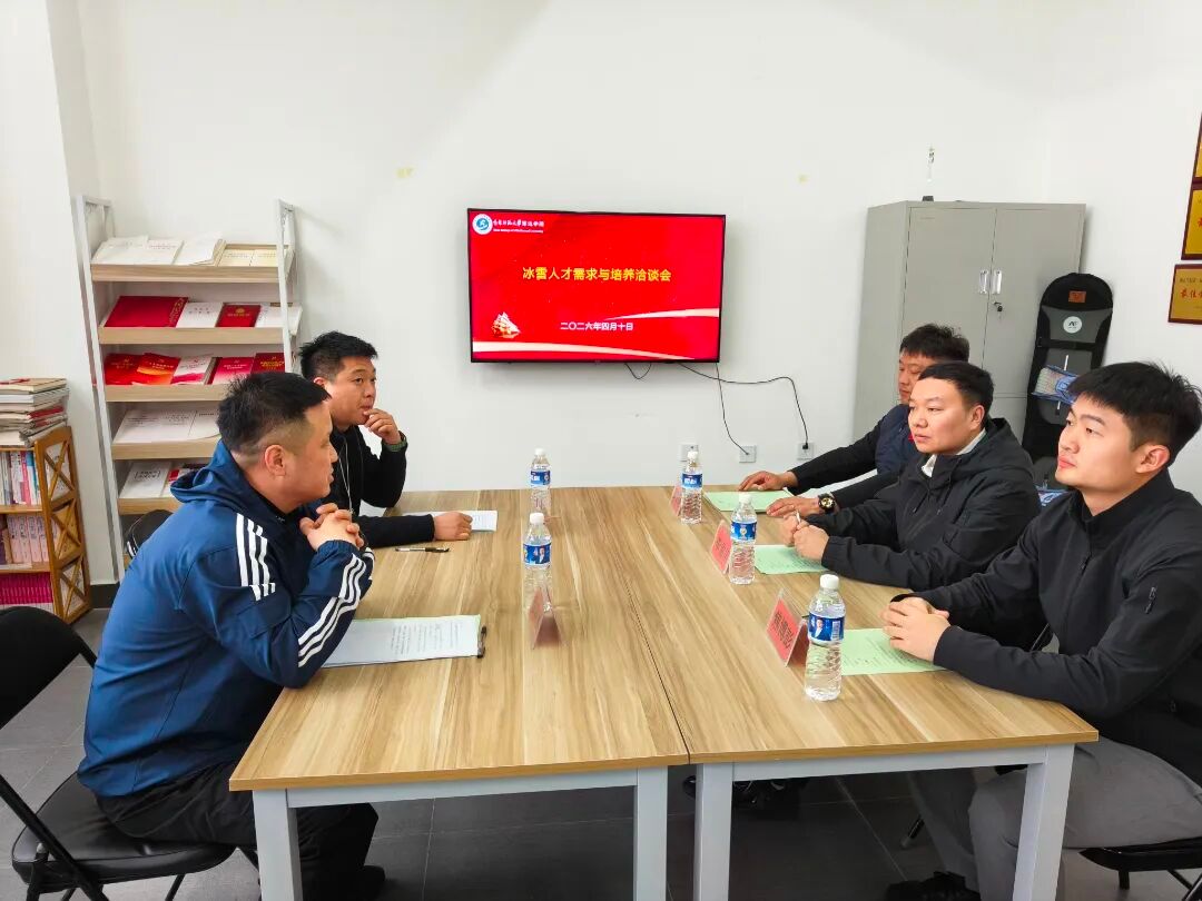 为精准对接冰雪产业人才发展需求,深度推进校企协同育人工作,为学院即将开设的冰雪运动专业人才培养目标设定提供参考。2026年4月10日下午,体育学院在党员活动室顺利举办冰雪人才需求与培养洽谈会。本次会议搭建起校企沟通协作的务实平台,全力推动冰雪专业人才培养与行业需求精准适配。吉林省莲花山冰雪协会副会长徐春雷、抱雪团田径体适能俱乐部训练部副部长伊彬,体育学院副院长李重言,教师罗文涛、焦博彭及学院学生代表共同参会。