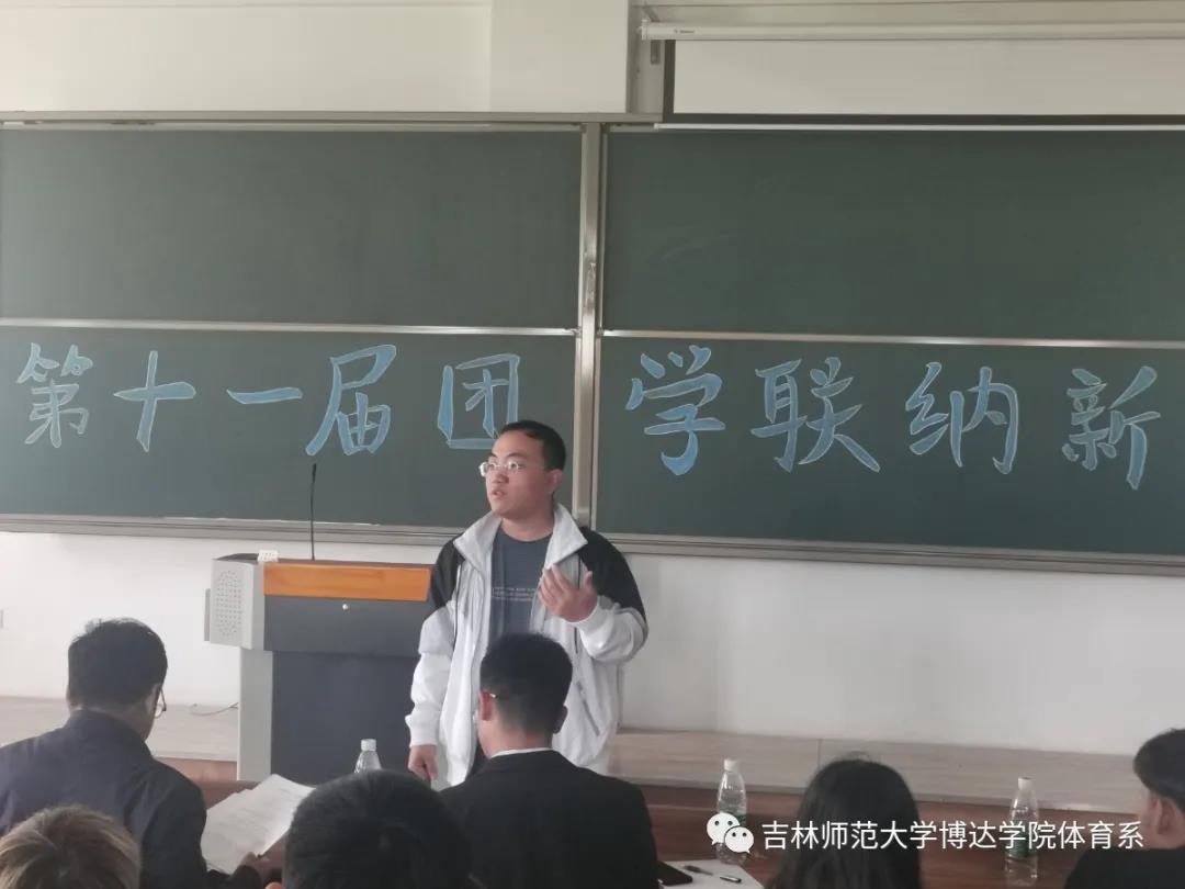 为了给同学们提供一个锻炼、提升自己的平台,展现自己才能、发挥自身优势的机会,同时,也为给体育学院学生会注入一股新鲜血液,完善学生会内各项职能,更好地服务师生,做好学院与学生之间桥梁的工作。吉林师范大学博达学院体育学院于2021年5月9日上午9点在综合楼1118举办第十一届团学联纳新活动。出席本次活动的有邵连成副院长、陈立春副院长、学工办主任杜振兴老师,18、19级团学联成员以及20级参加竞选的同学。