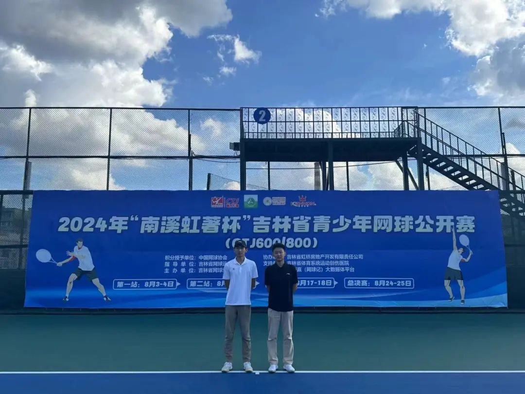2024 年 8 月 24 日至 8 月 25 日,“南溪虹著杯”吉林省青少年网球公开赛在吉林省长春市举行。在这场备受瞩目的赛事中,吉林师范大学博达学院体育学院 21 级的毛伟明和张家瑞同学以裁判的身份亮相此次赛事,他们用专业的素养和公正的裁决,为这场高水平的青少年网球赛事保驾护航。