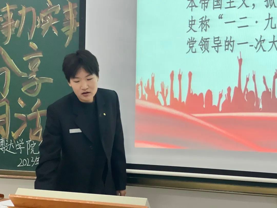 学生代表从运动背景、运动经过以及运动意义这三方面给大家进行讲解,加深了同学们对“一二·九”运动的了解,更加坚定不移地听党话,跟党走,在新征程上担当新使命、展现新作为。21世纪的今天,战争的硝烟早已散去。现在的我们是幸福的,这幸福是无数革命烈士用鲜血换来的。如今,作为青年一代,我们更应该厚植爱国情怀,因为历史的钟声一在激励着我们为祖国的建设不懈努力。