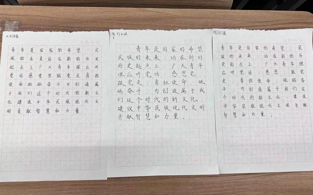 为了传承和发扬中华书法文化,提高体育学院学生板书书写技能,促进学院学风建设发展,文语部于2023年11月8日举行了“学习新思想,抒写新时代”为主题的硬笔书法大赛,担任本次比赛评委的是:辅导员柳杨老师、夏师澄老师、团学联新媒体中心部长原靓、办公室助理张卉。