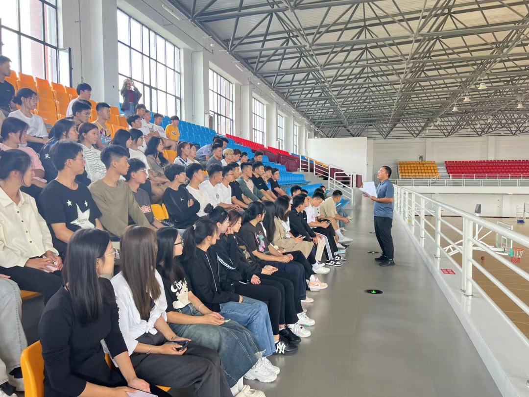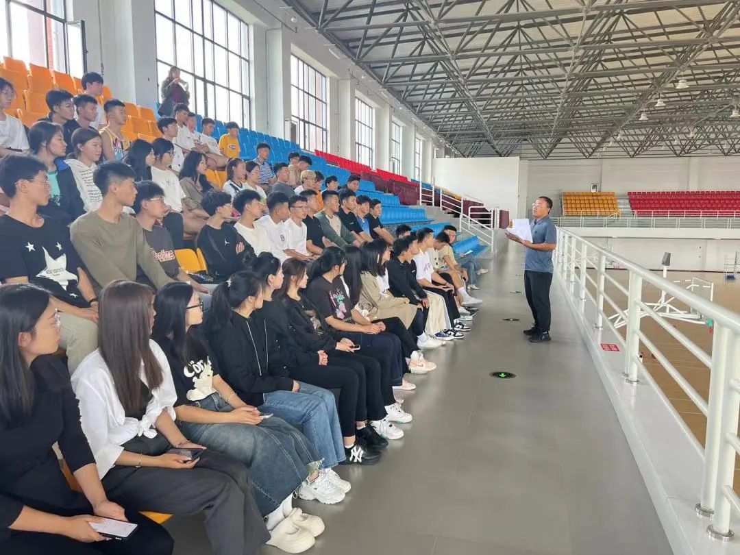 为统筹推进、全面部署体育学院迎新工作,确保2023年迎新工作顺利进行,体育学院于2023年8月30日中午在体育馆召开了学生工作会议,布置近期新生报到准备工作和开学初期学生管理教育工作,出席本次会议的有学工办主任杜振兴老师、辅导员夏师澄老师、团学联干部和班级干部。