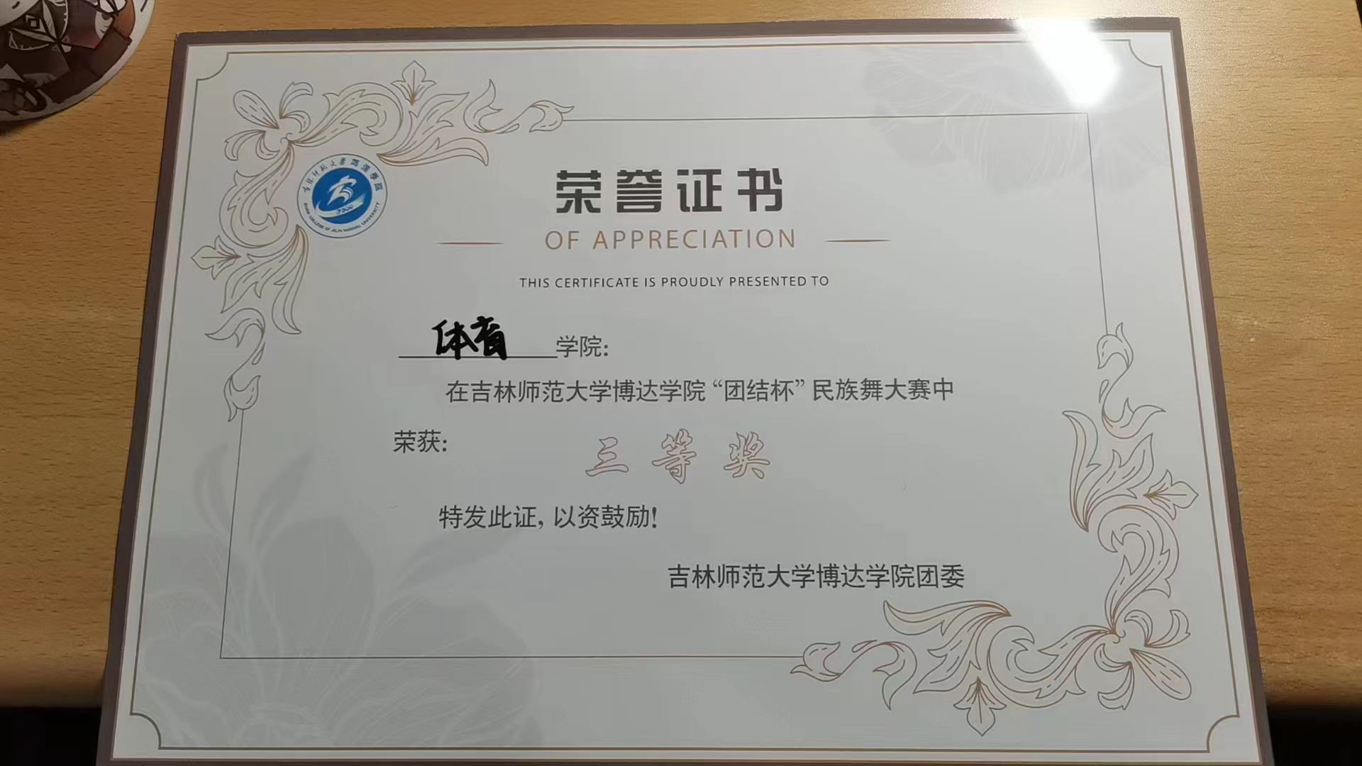 吉林师范大学博达学院体育学院在“团结杯”民族舞大赛中荣获三等奖!