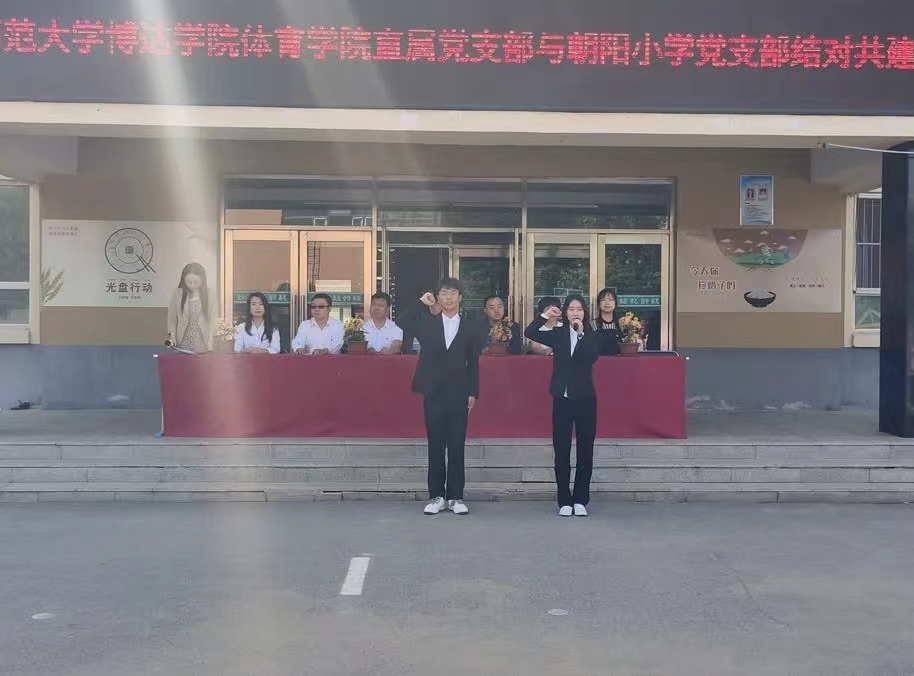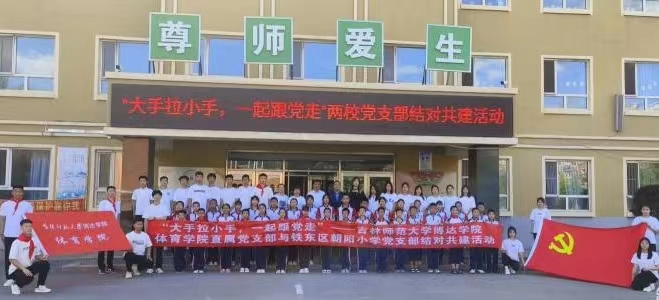 为深入学习贯彻落实党的二十大精神,深化新时代学校结对共建合作,积极落实共建校签约文件精神,进一步推动结对学校深入交流,体育学院于6月8日下午在铁东区朝阳小学举行“大手拉小手,一起跟党走”───吉林师范大学博达学院体育学院直属党支部与朝阳小学党支部结对共建活动。
