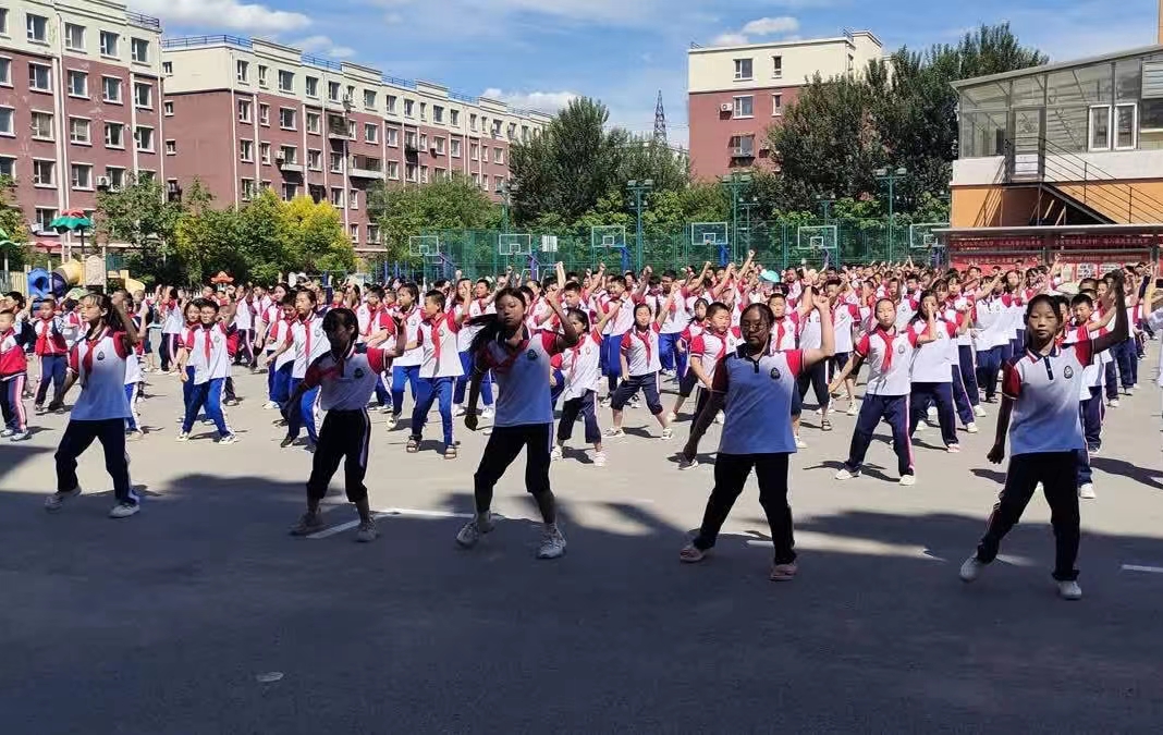 五位领操员带领学生们一起跳课间操《快乐崇拜》,随着熟悉又轻快的音乐响起,同学们精神饱满,气宇轩昂,举手投足间充满着自信与活力。各班起落有序、整齐划一的动作赏心悦目,赢得大家一致称赞。
