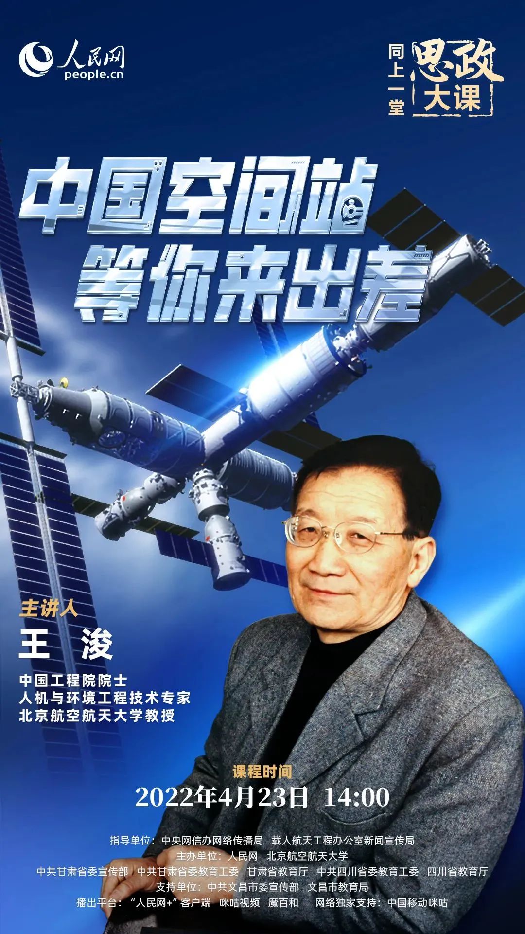 2022年4月24日是第七个“中国航天日”同上一堂航天思政大课今天下午14:00开讲跟随中国工程院院士王浚回望中国航天发展历程了解一代代中国航天人向深空挺进的追梦故事追寻他们向深空挺进的执着步履