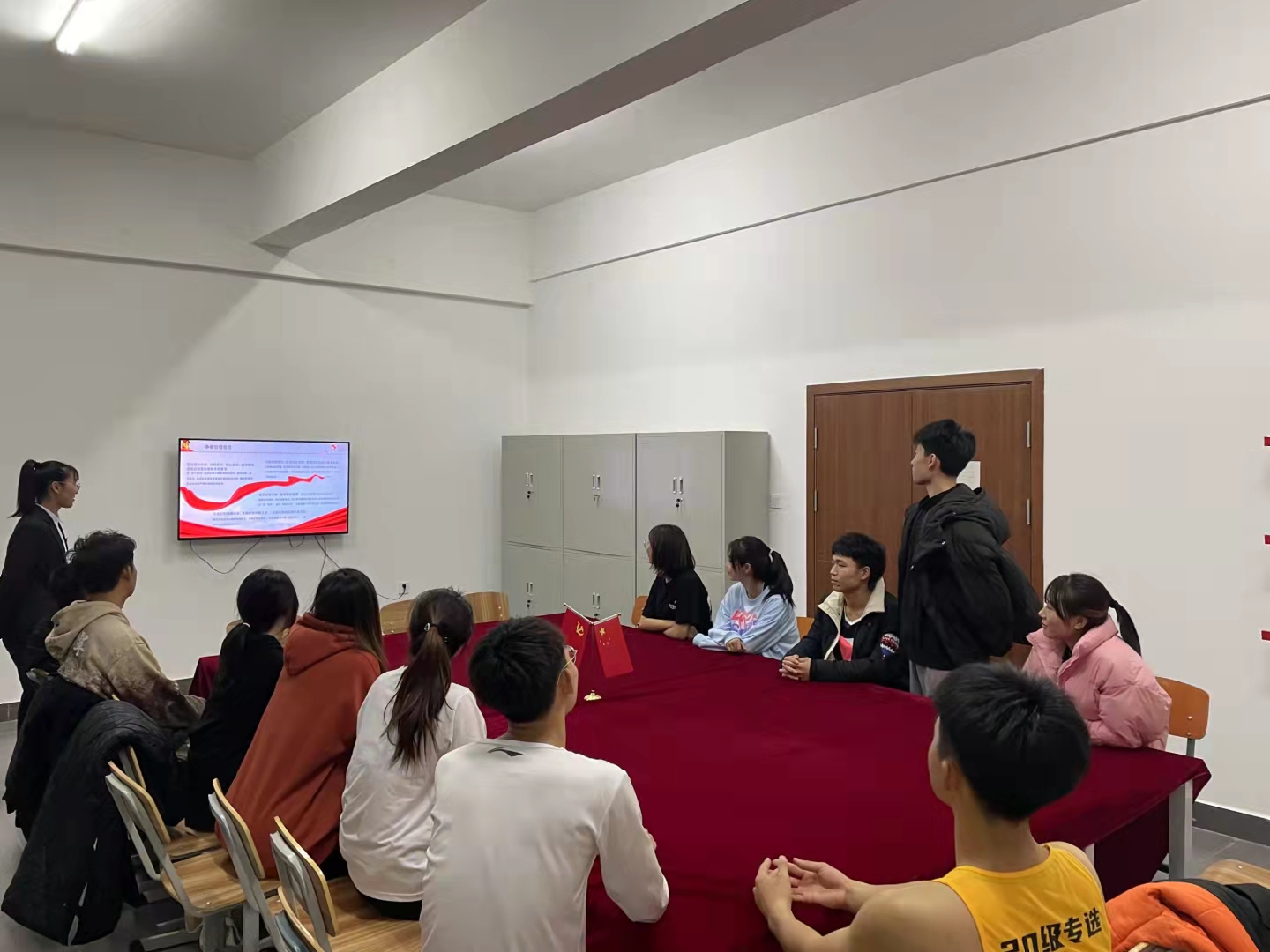 2021年10月27日,体育学院为响应中共中央印发的《关于在全党开展党史学习教育的通知》,在党员活动室开展了“永远跟党走”主题党课。主讲人组织部陈可欣,由部分团学联成员参加并学习。