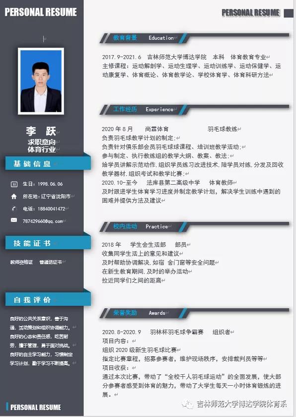 看了这么多优秀的简历,相信同学们经过这次活动,一定对如何制作优美的简历有了自己的心得。最后,希望同学们可以在大学时间提升各种技能,抓住先学习机会,积累实践经验,培养一种成熟的心智。