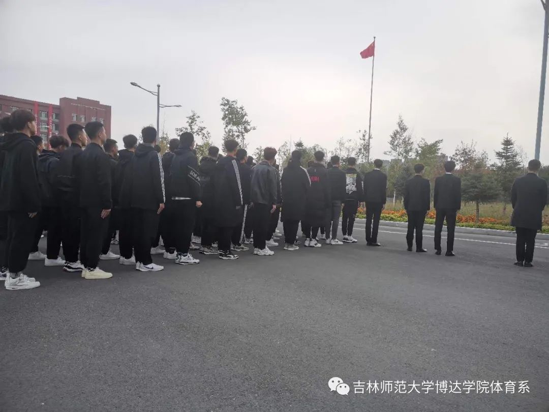为了庆祝祖国的生日,吉林师范大学博达学院组织了庄严的升旗活动。