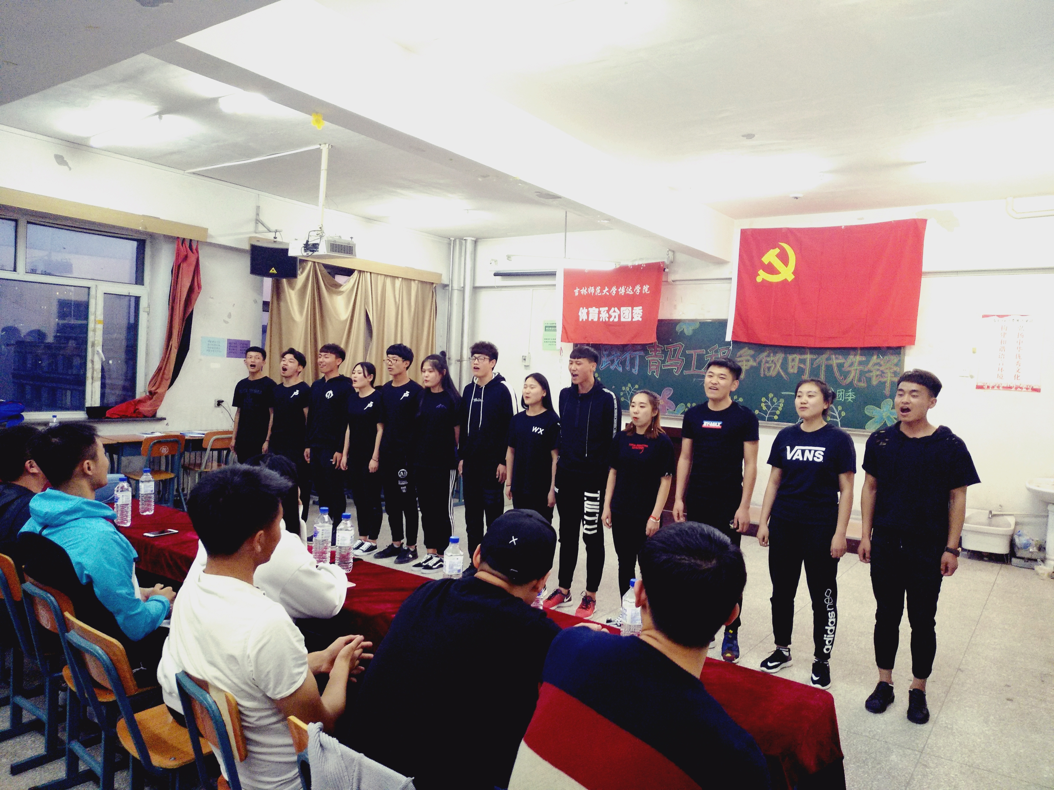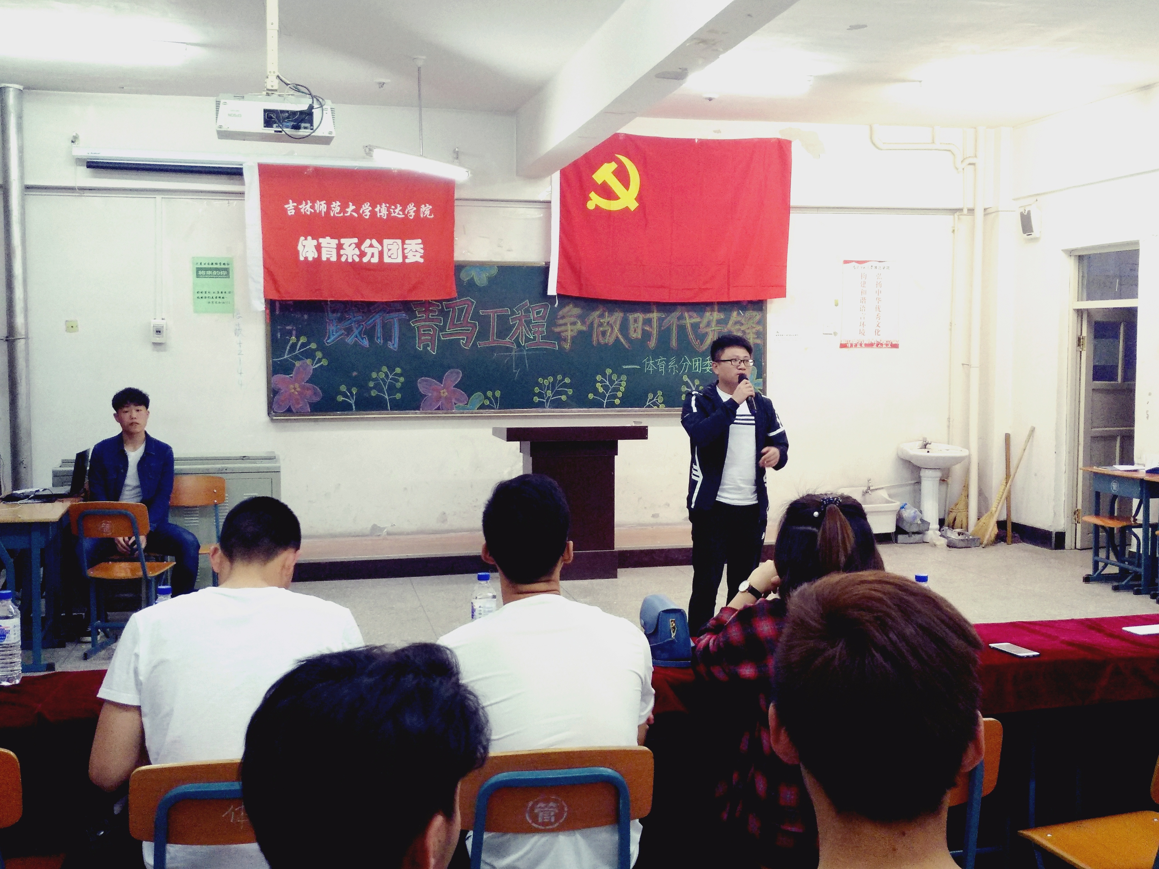 2018年5月8日体育系在吉林师范大学博达学院第一教学楼1417教室成功举办——“践行青马工程,争做时代先锋”主题团日活动,参加此次活动的人员有体育系辅导员王博老师、体育系教学秘书宋迎老师以及体育系17级全体同学,活动中大家以小品、诗朗诵、三句半、等表演形式充分的诠释了青马工程的意义,同学们的表演积极精彩,风趣幽默,体现出当代大学生对青马工程的理解和认知。