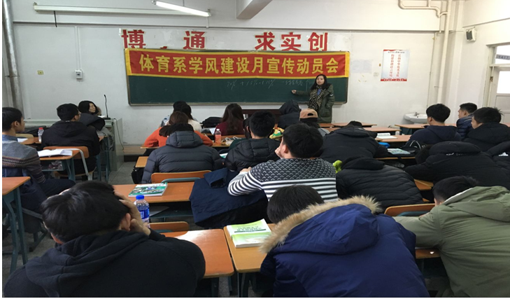 16年11月30日上午,体育系在博达学院第一教学楼1417召开“学风建设月宣传动员会”。出席本次会议的有,学工办尹茹老师及部分学生代表。
