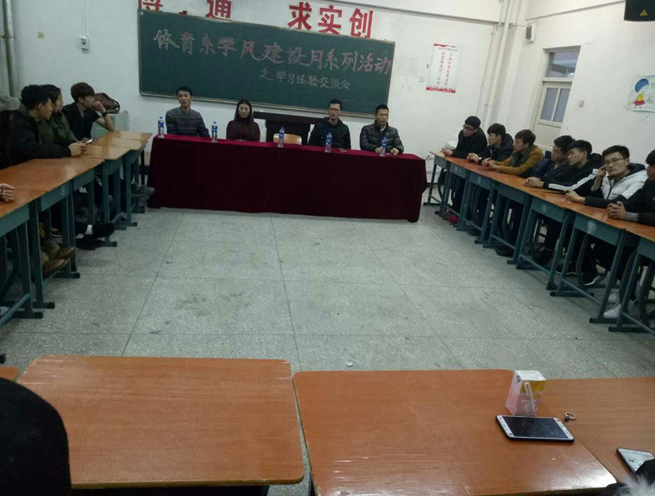 为让我系2016级新同学迅速的适应大学生活,找到适合自己的学习方法,合理的利用课余时间,正确处理学习、工作、生活三者之间的关系,充实度过美好的大学生活。我系于 2016年11月30日下午,在博达学院第一教学楼1417举办了学习经验交流会,出席本次交流会的老师有体育系学工办尹茹老师,学生代表和大一全体学生。