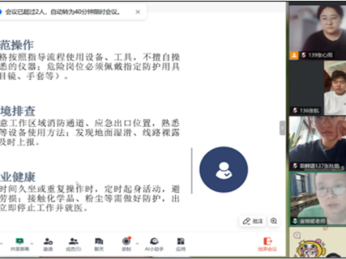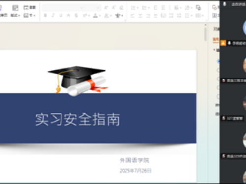 2025 年 7 月 26 日,学院组织各实习小组指导老师开展实习安全教育工作。学院精心准备安全教育PPT,向学生们详细讲解实习过程中的安全注意事项,内容涵盖出行安全、工作场所安全、紧急情况应对等多个方面。通过丰富的案例展示和深入浅出的讲解,让学生深刻认识到安全的重要性,提高自我保护意识。
