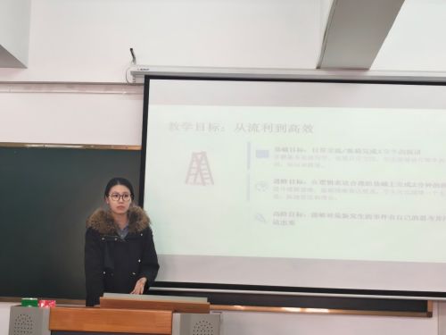 活动中,张楠老师以 “探索高效沟通与表达的教学路径” 为主题,从教学理念与目标、会话教学核心策略、演讲教学关键技巧、教学案例实践及 AI 辅助教学五大方面展开分享。她提出,英语教学应坚持以学生为中心、立德树人根本任务,秉持 “沟通与表达双重培养” 核心理念,兼顾语言实用性与学生表达自信心培养,设立从日常交流到结合时事输出独立思考的分阶教学目标,实现学生从流利表达向高效表达的进阶。