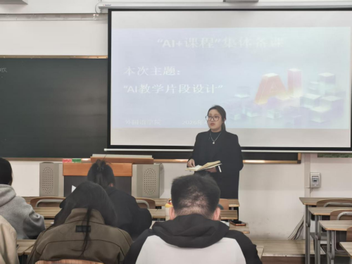 会上,各专业教师结合教学实践,就AI赋能外语课堂教学开展集体备课。