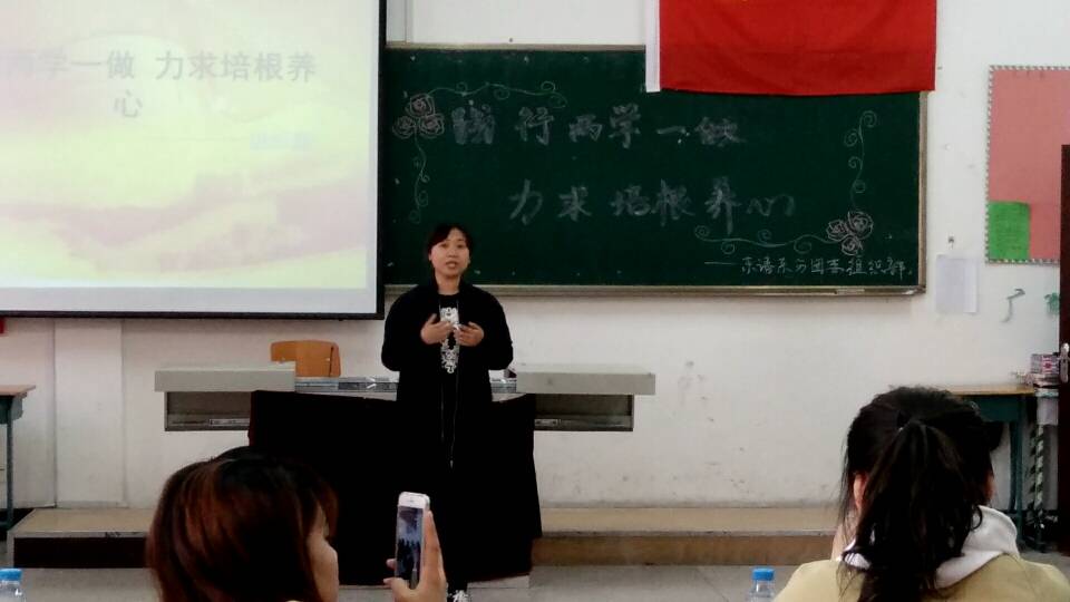 为认真贯彻落实党中央“两学一做”学习教育方案,引导同学们不断提高自身修养,加强思想道德建设,东语系分团委组织部于2017年4月19日组织开展了“践行两学一做,力求培根养心”为主题的团日活动,活动邀请到崔婷婷老师莅临参加,并得到了各位积极入党同学的支持,纷纷报名参加本次活动。