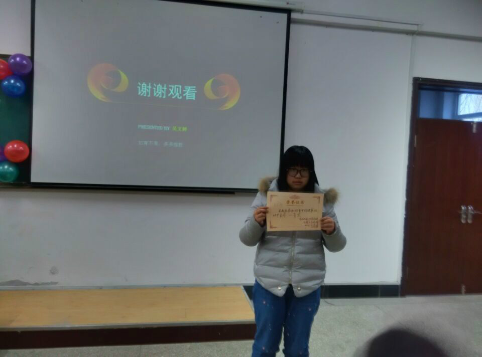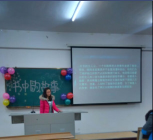 为了更好的丰富学生课余文化生活,帮助学生养成读好书,好读书的习惯。东语系乐读社于2015年11月29日下午3:00在3教220教室举办了“书中的故事”PPT讲演大赛。评委从PPT的内容、版式、和讲演三方面进行评分。主办方首先让参赛选手写一篇读后感。然后由乐读社的成员讨论选出六名同学通过PPT讲演的形式把自己读过的书介绍给大家。选手们有感而发,向评委和观众们介绍自己的读书感悟,赢得了评委和观众的好评。最终,吴文婷同学获得一等奖,李帅同学、谷雅各同学获得二等奖,张博怡同学、刘媛同学、陈薪吉同学获得三等奖。