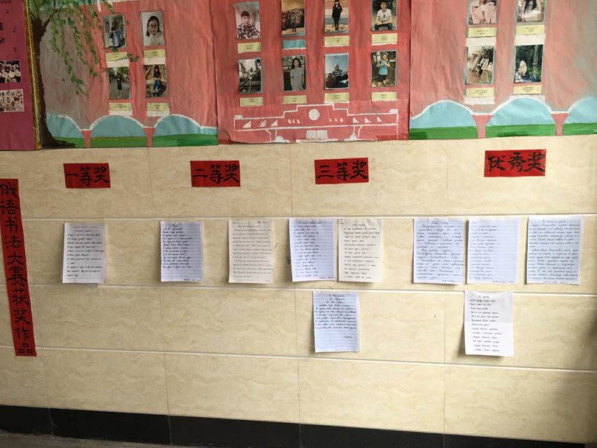 为了增强学生的书写规范意识,培养学生良好的书写习惯和学习兴趣,提高学生的俄语书写能力,展现俄罗斯风情,凸显专业特色,东语系极光社于2017年4月19日举办了俄语专业书法大赛和俄语专业特色手抄报比赛。书法大赛和手抄报比赛面向俄语专业三个年级学生展开了作品征集。