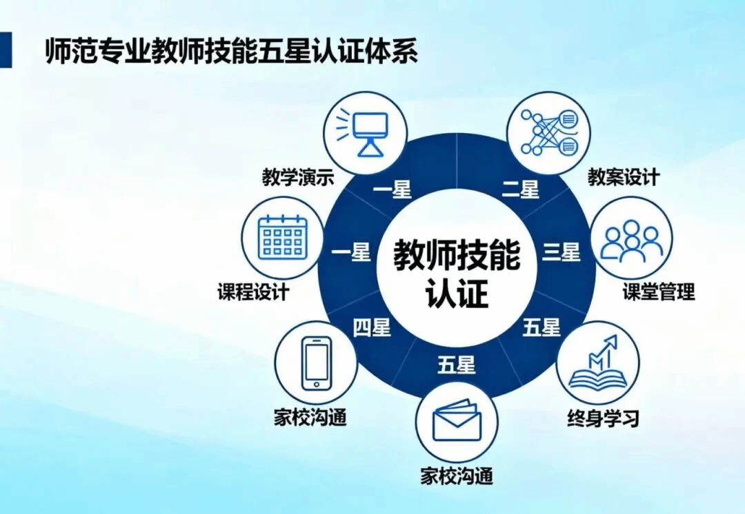 3.认证资料有效时间:2025年9月——2026年9月4.认证资料:为推进五星认证顺利进行,学院将分阶段开展与教师职业基本技能相关的比赛。