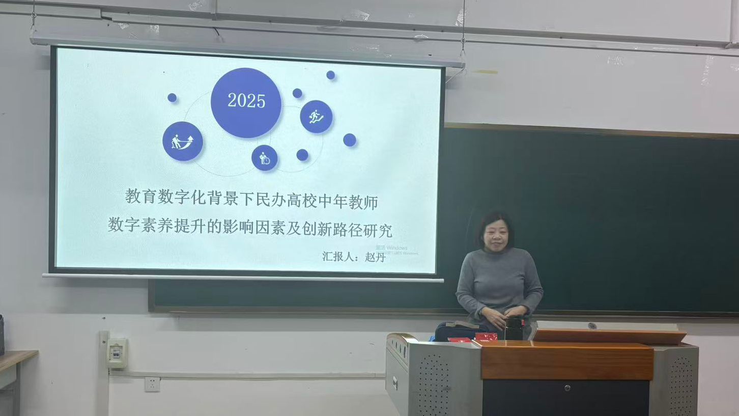11月19日下午14:00,文学院在综合楼1509教室举办了专题教研活动。此次活动由赵丹老师和崔光福老师分别进行专题汇报,汇报主题分别为《教育数字化背景下民办高校中年教师数字素养提升的影响因素及创新路径研究》和《师范专业认证背景下民办高校语言学概论教材建设的新思考》。
