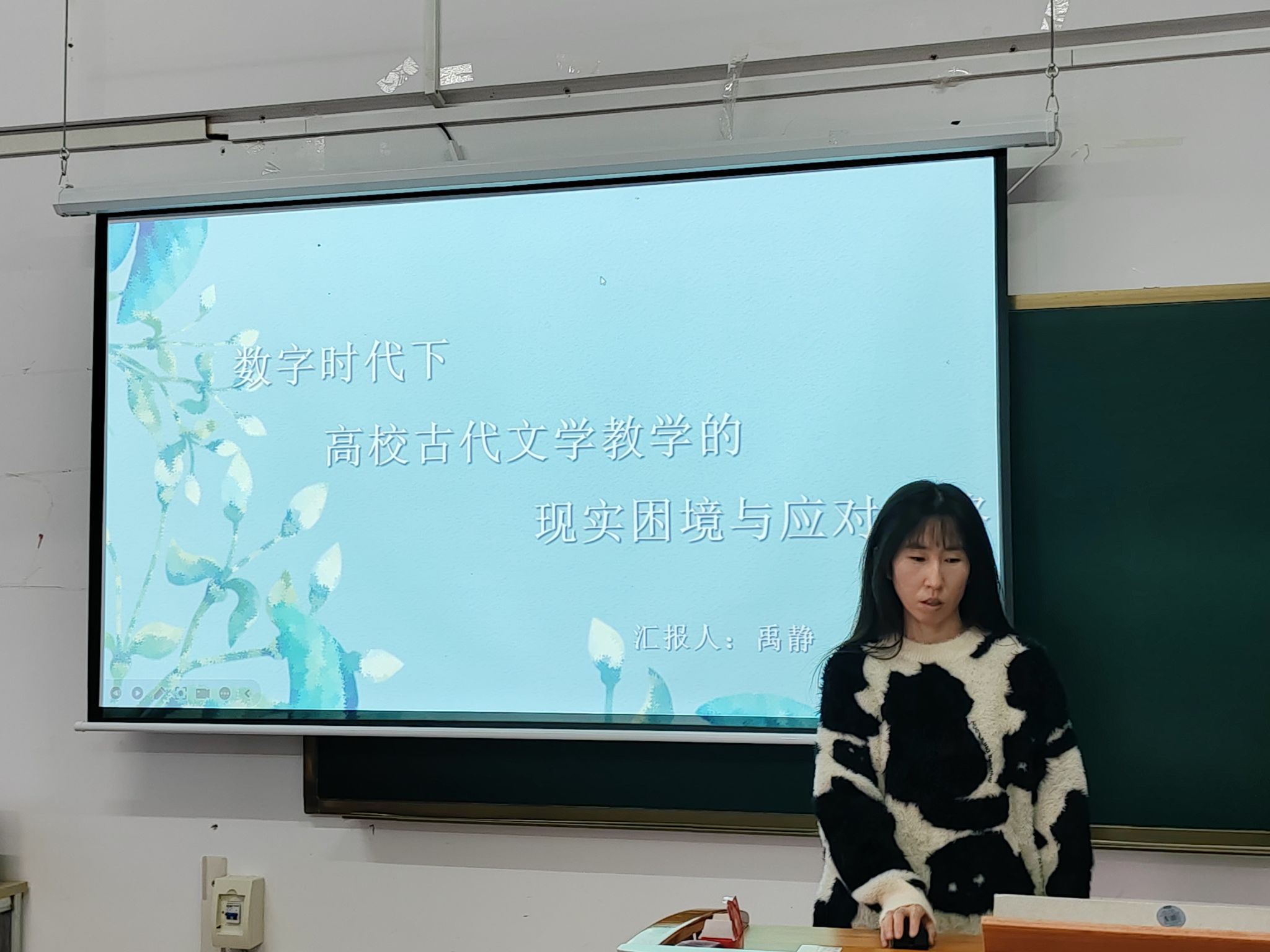 12月10日下午14时整,文学院于综合楼1509教室组织召开了以“跨学科融合与数字赋能视域下文学课程体系构建”为主题的专题教研活动。本次活动聚焦新时代高校文学教育的创新发展方向,旨在探索数字技术与跨学科理念深度融合背景下的课程改革路径。禹静老师围绕古代文学课程的建设,分享了如何借助数字资源与信息技术重构经典教学内容;刘奕含老师则从现当代文学出发,探讨了跨学科视角下文学与其他领域融合的可能性与实践案例。