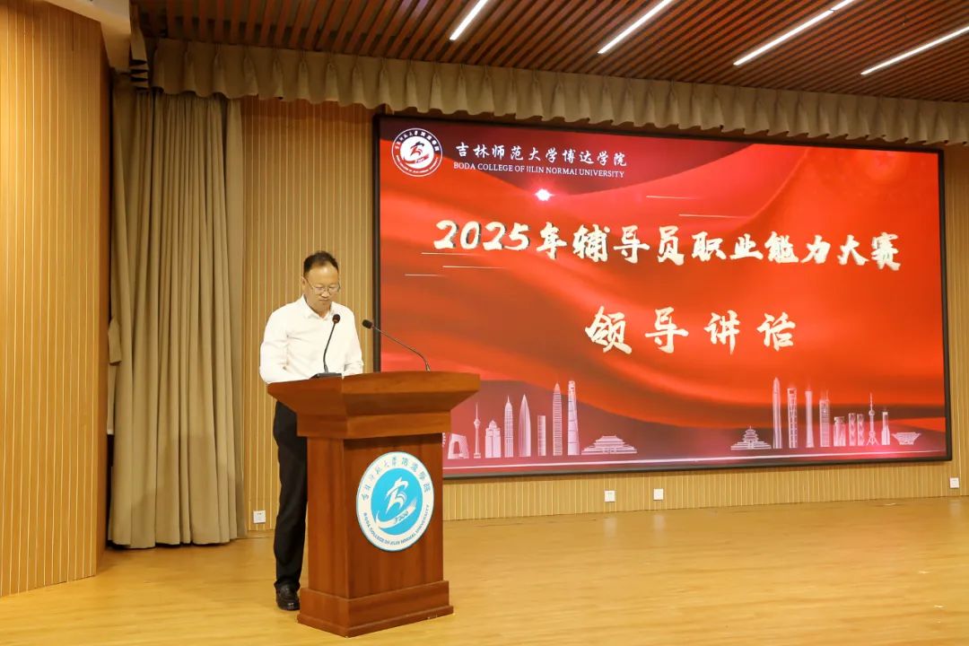 为深入学习贯彻习近平总书记关于教育的重要论述,进一步提升学校辅导员队伍理论水平、职业能力和专业素养,促进我校辅导员队伍专业化、职业化发展,2025年6月12日,吉林师范大学博达学院2025年辅导员职业能力大赛决赛在图书馆一楼报告厅成功举行。