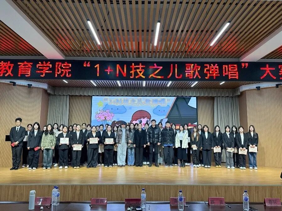为丰富学生校园文化生活,提升学生艺术素养展现教学理念创新,教育学院于2025年11月2日18:30在图书馆一楼报告厅举办了“1+N技”之儿歌弹唱大赛。出席本次大赛的评委老师有教育学院专职教师赵胜男老师、王涛老师、郭英老师、龚健美老师、孔冰妮老师、詹梦希老师。灯光流转,选手们满怀着对儿歌的热忱,以指尖的跳跃和动人的歌声,带大家穿梭于童年的美好时光。每一首儿歌都如同一把钥匙,打开了大家记忆的闸门,那纯真的旋律和质朴的歌词,...
