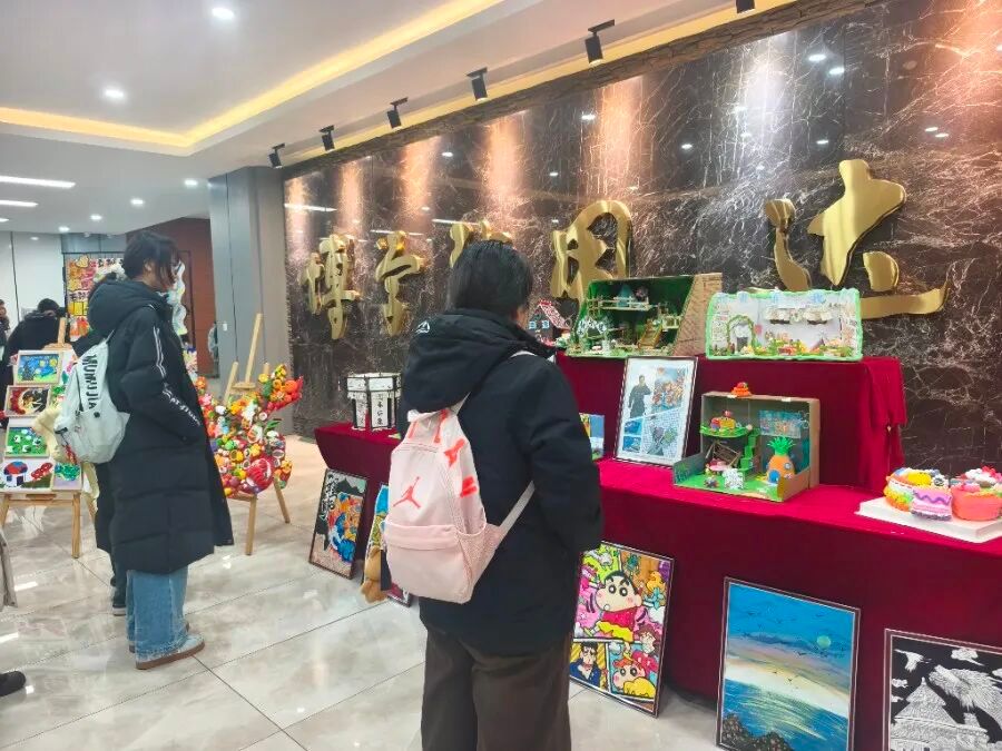 展览聚焦学前教育专业特色,强调美术基础理论与幼儿园教育实践的有机衔接。学生们在郝雪丽、王贺两位指导教师的引领下,将课堂所学转化为一件件生动作品。展区涵盖多个板块,充分体现了学前教育美术的实用性、趣味性与教育性。现场作品构思精巧,表现手法丰富,不仅展现了学生们扎实的专业技能,更折射出他们对儿童心理、创意创新及教育环境的深入思考。