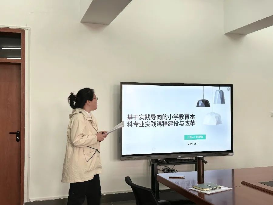 为培养更契合时代需求的教育人才,为小学教育专业发展探寻新路径,学前与小学教育学院于2025年5月21日下午16:00在综合楼1309会议室举办了一场聚焦“基于实践导向的小学教育本科专业实践课程建设与改革”的教研活动,主讲人为赵婧怡老师,学前与小学教育学院全体专职教师参加会议。