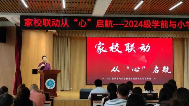 金秋送爽,萩风徐来。为了进一步加强家校沟通,携手共筑孩子们的成长桥梁,让新同学们尽快适应大学生活,学前与小学教育学院于2024年8月31日15:00在图书馆一楼阅览室举办了主题为“家校联动,从‘心’启航”的家长联席会。参加本次会议的老师有学前与小学教育学院经柏龙院长,王冰副院长,党总支书记汤鹏宇老师,小学教育专业负责人陶可新老师、步杨洋老师,学前教育专业负责人贾润竹老师,早期教育专业负责人李楠副教授以及2024级部分新生及家长。