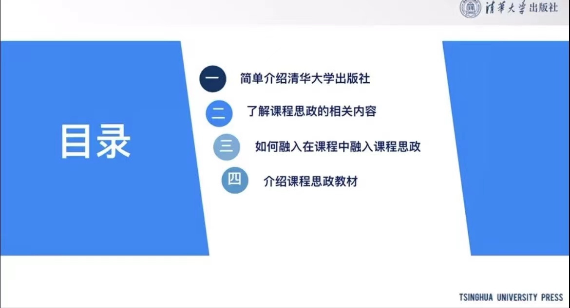 2022年4月20日14:00,学前与小学教育学院全体教师参加了由吉林师范大学博达学院与清华大学出版社联合举办的高校课程思政建设实践探索与教学设计分享专题讲座,会议主要包含四个主题,分别为介绍清华大学出版社;了解课程思政的相关内容;如何融入在课程中融入课程思政;介绍课程思政教材。