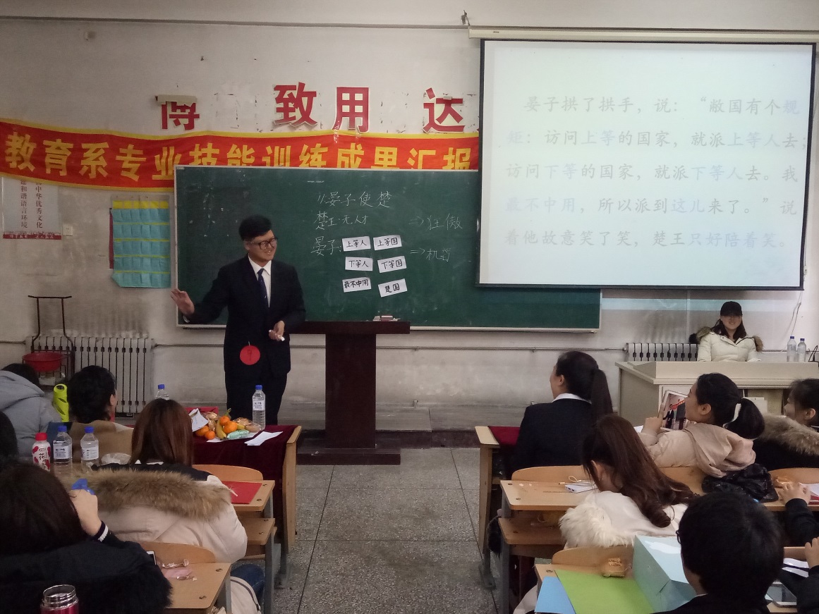 2017年12月28日下午1时,教育系在2302教室成功举办了“教师专业技能训练” 成果汇报活动。此次活动邀请了教育系主任助理王冰老师、王妍老师、袁晶老师和赵静怡老师担任评委。