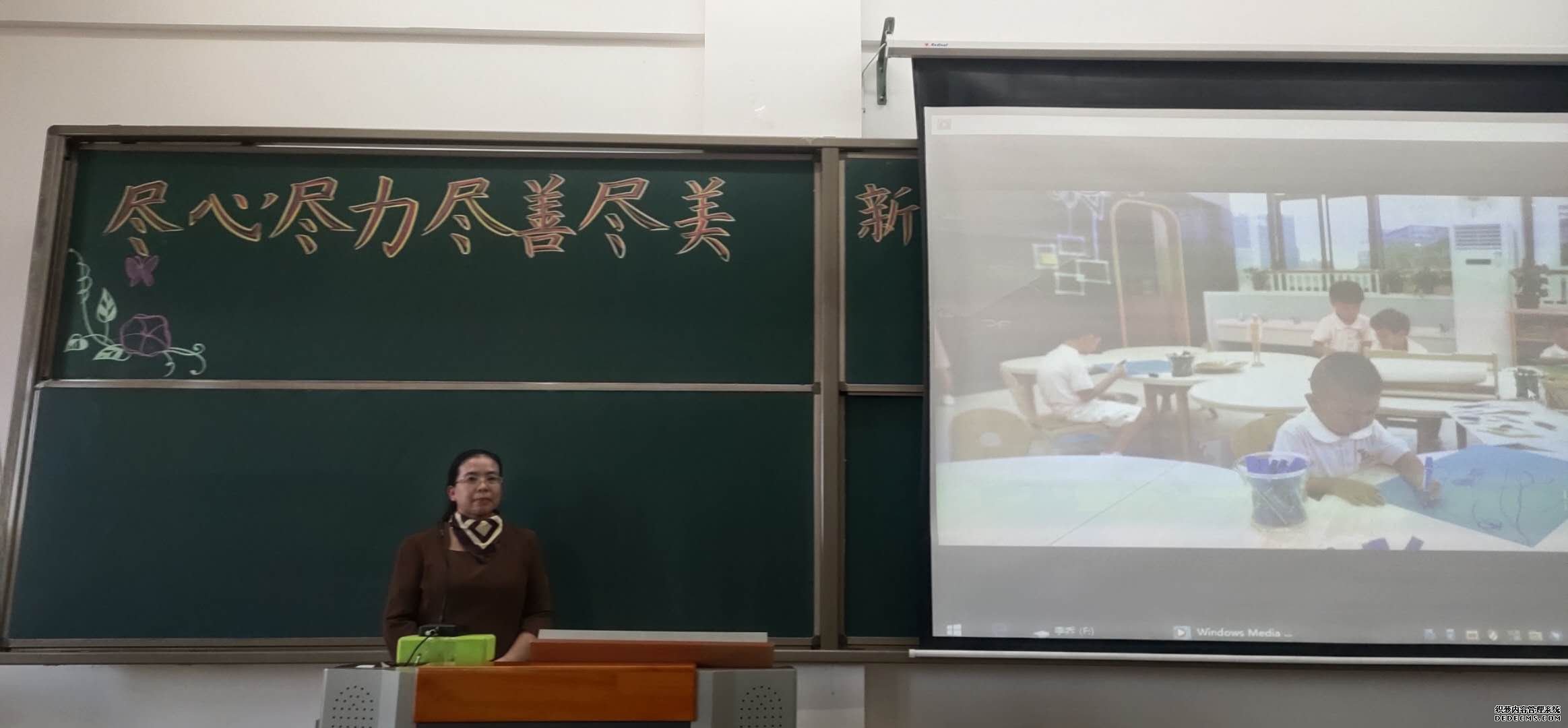 学前与小学教育学院于2020年11月7日下午2点在综合楼1118教室举办“尽心、尽力、尽善、尽美——新入园幼儿教师实践指导”主题讲座。佛山市爱一思教育机构滕巧宁老师担任本次主讲人,出席人员有学前与小学教育学院赵晓光院长以及18级学前教育专业全体同学。
