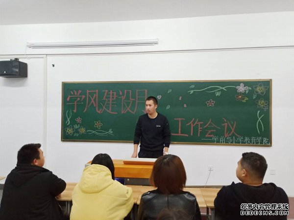 于2019年11月6日16:30吉林师范大学博达学院学前与小学教育学院在综合楼1302拉开了“学风建设月安全工作会议”的帷幕。本次会议由学工办主任柳志明老师主讲,生活部成员、16级17级18级寝室长及生活班长参加。